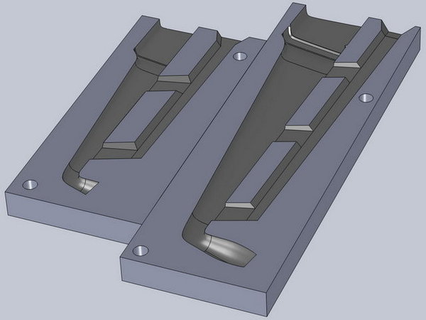 Kokila - stalowa forma do odlewu aluminium - nogi i ramienia stolika. Projekt CAD i wizualizacja.